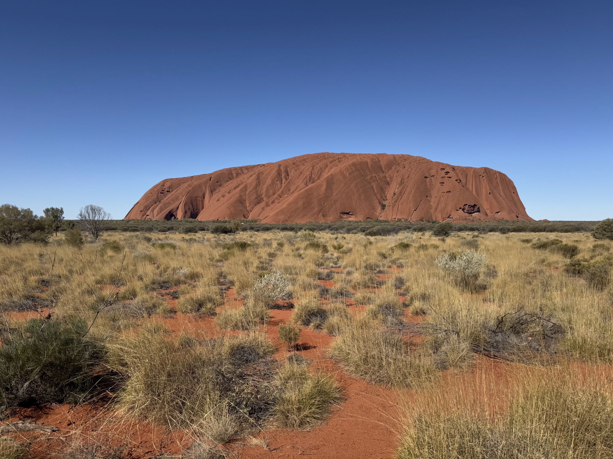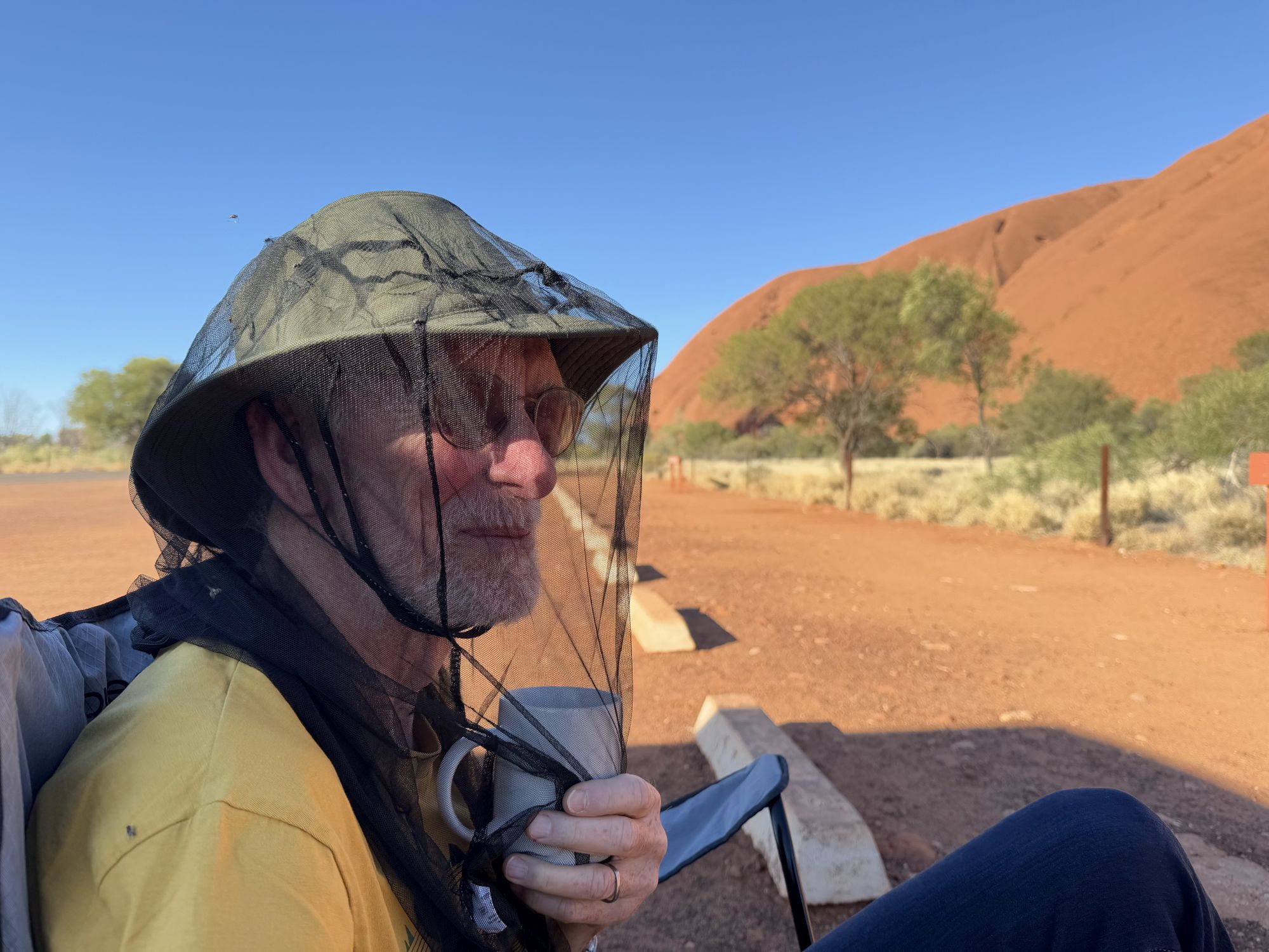 Am Mala Parkplatz machen wir uns einen Kaffee und genießen ihn und ein Stück Kuchen in Angesicht des imposanten Uluru. Obwohl man schon so viele Bilder gesehen hat, überwältigt die schiere Größe des Berges und seine Präsenz.