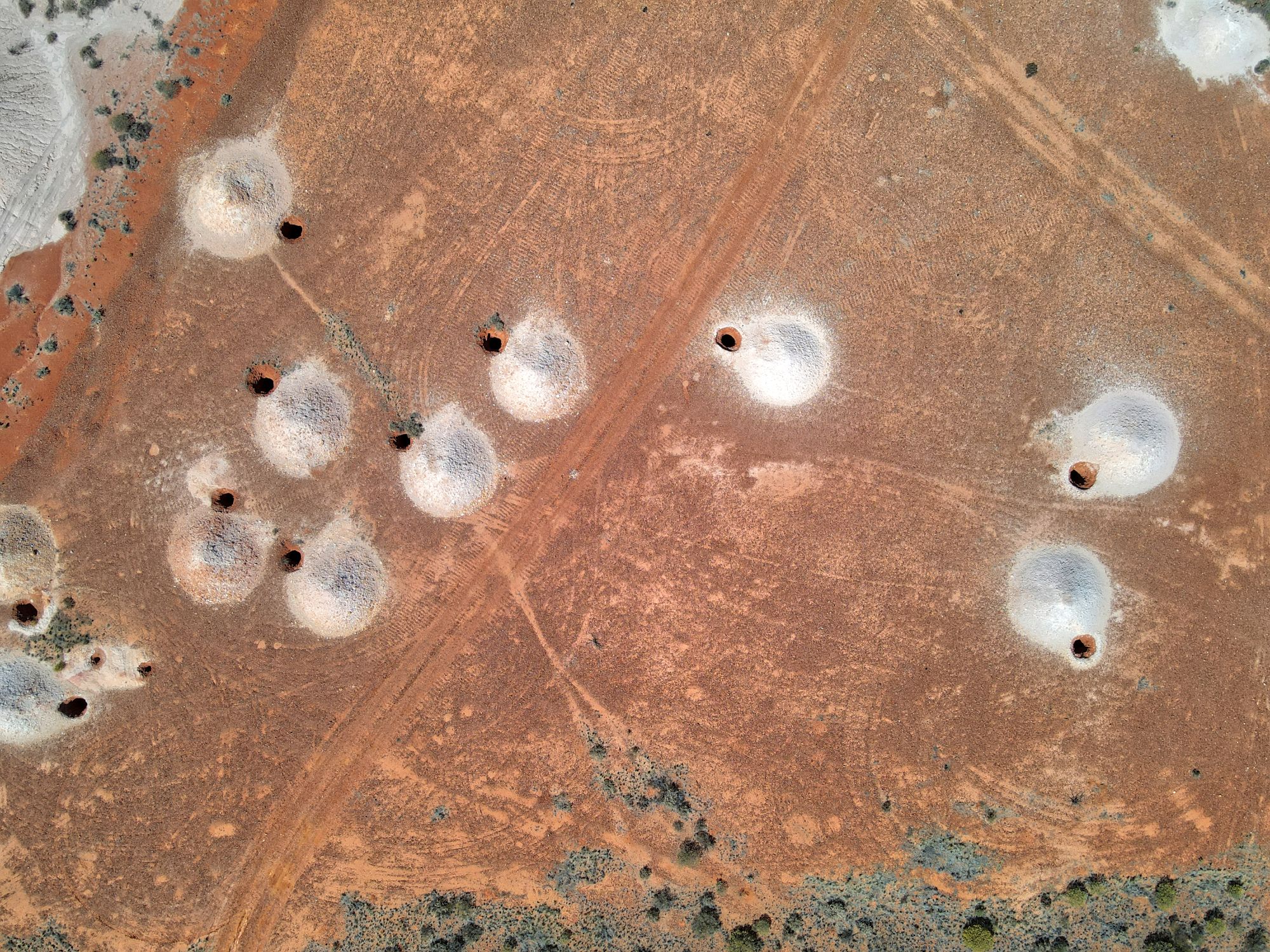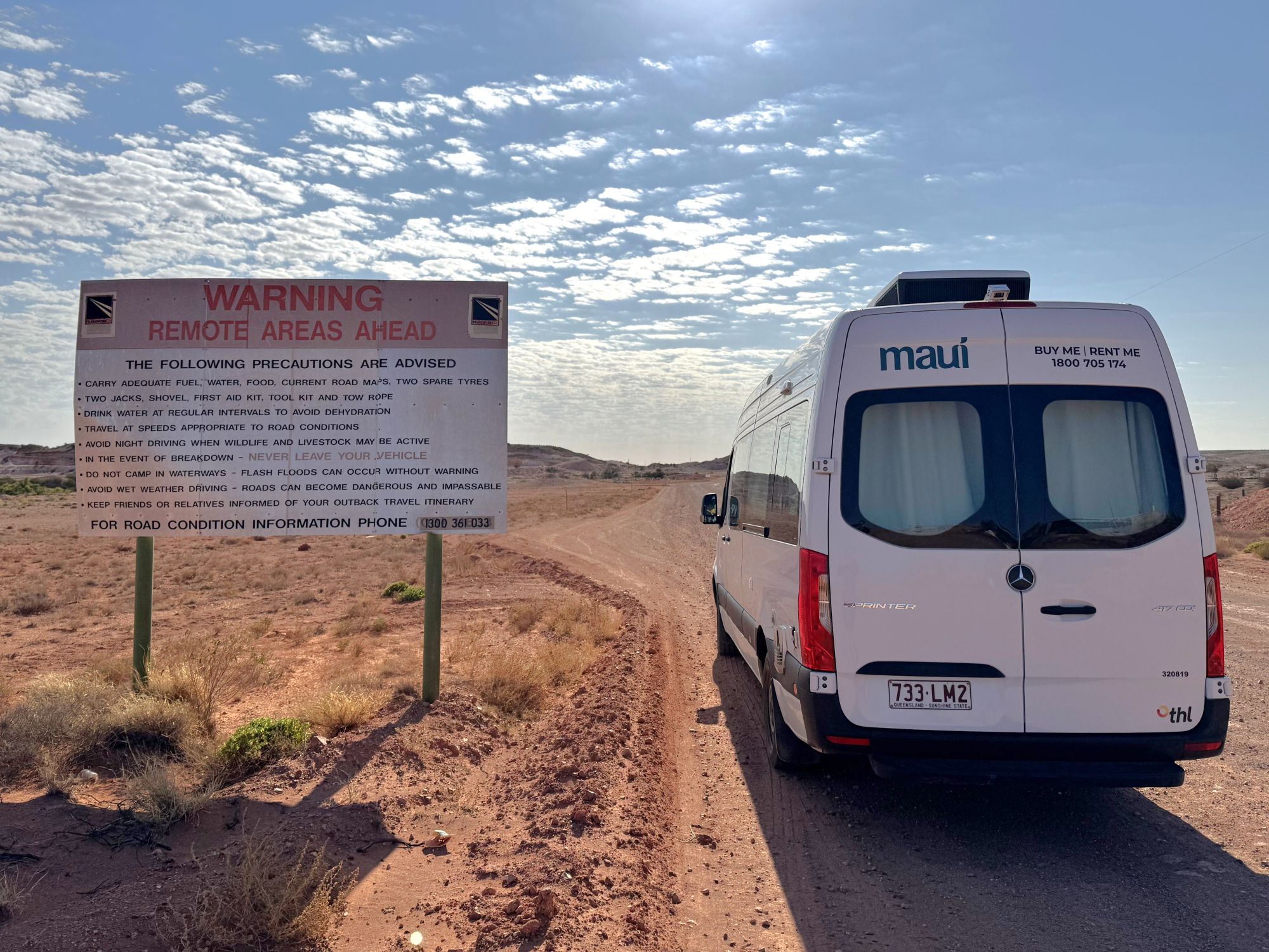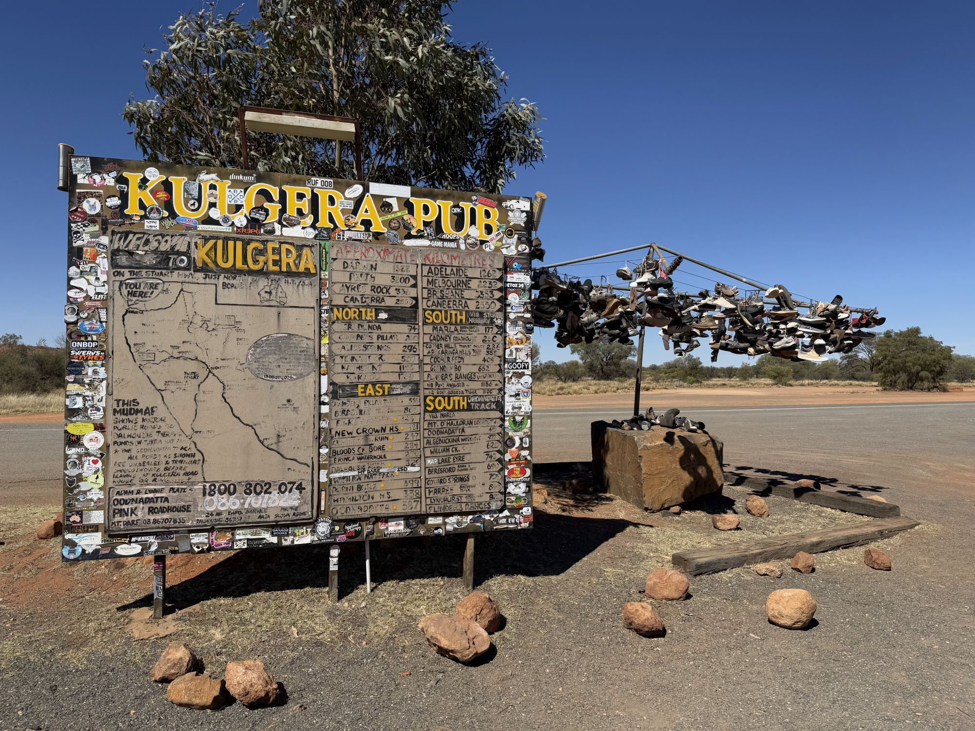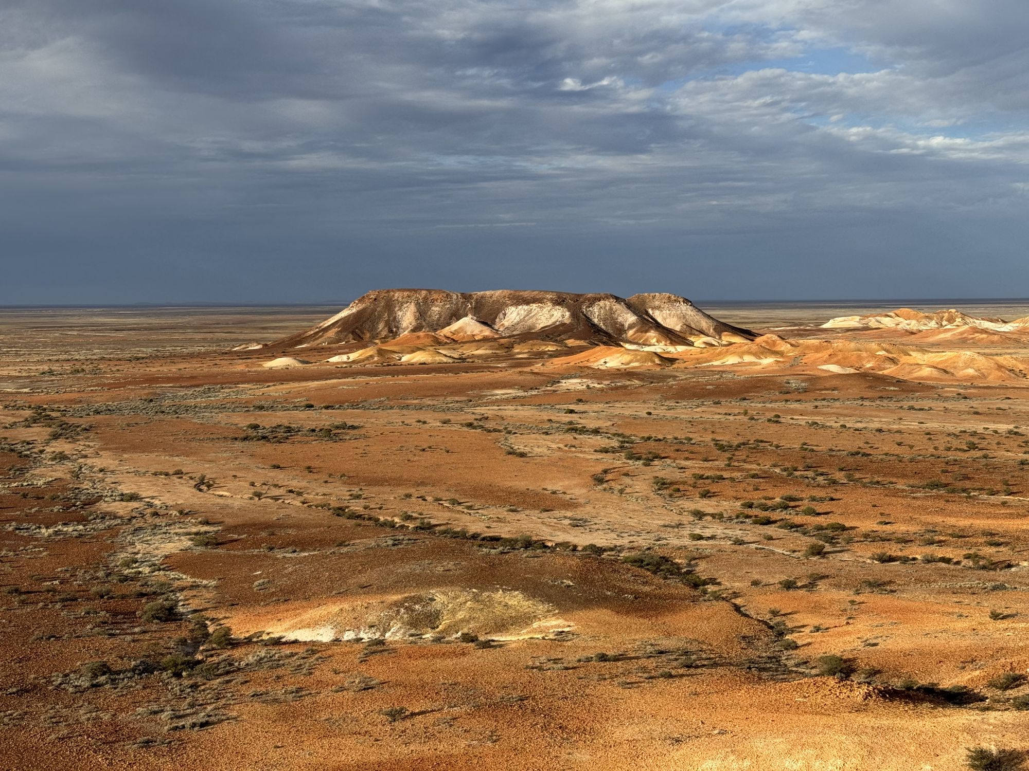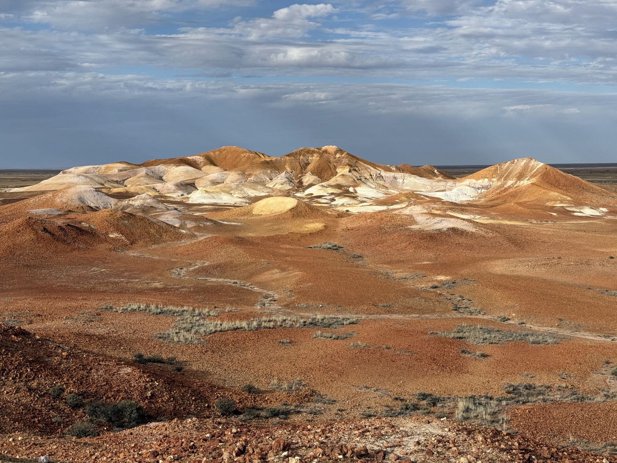 Die Strecke nach Coober Pedy ist sehr eintönig, flach und mit niedrigem Buschwerk bewachsen, ab und an sieht man eine Kuh (überfahren oder lebendig). Coober Pedy kündigt sich 50 km vor der Stadt mit kegelförmigen Abraumhalden an, eine absolute Mondlandschaft.