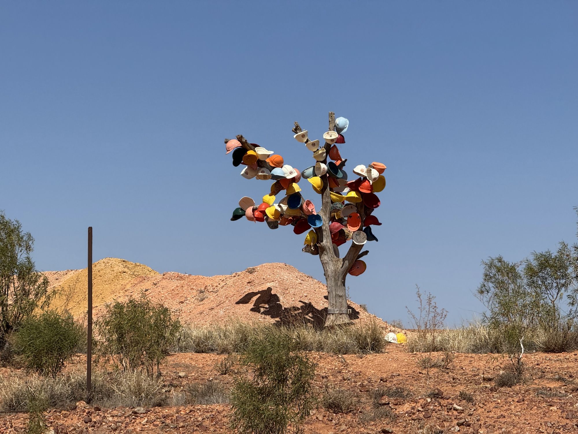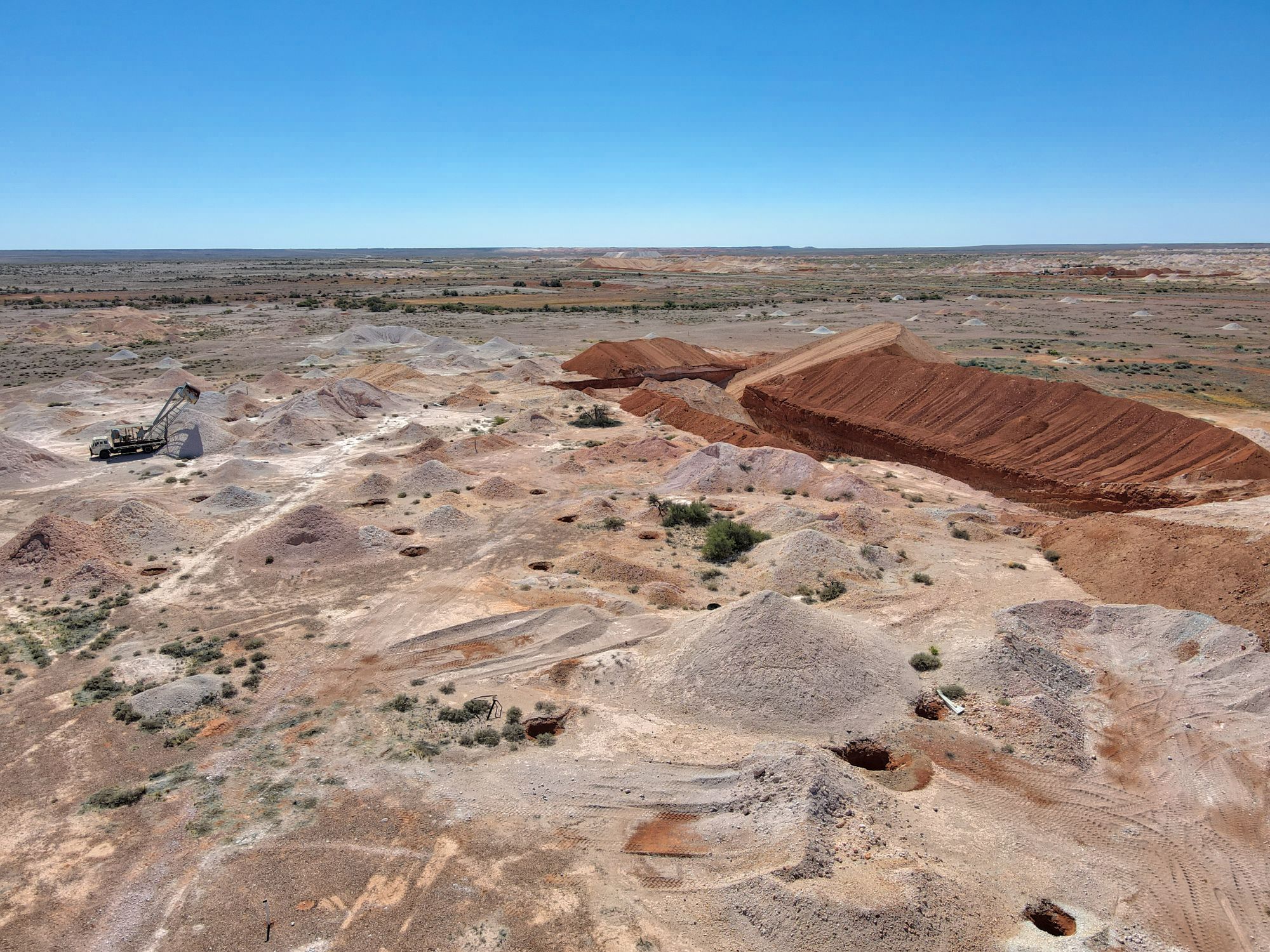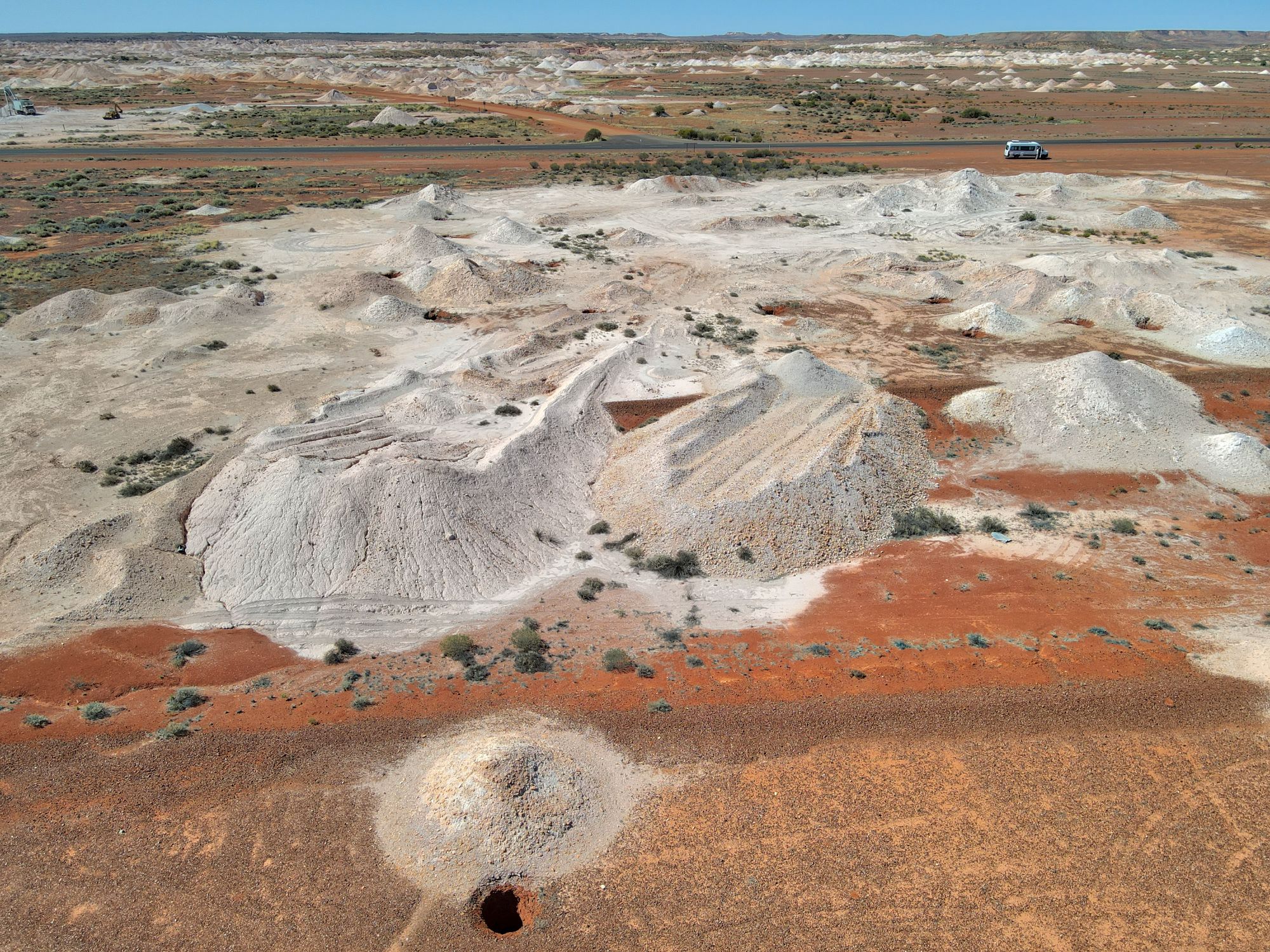 Coober Pedy entstand 1915, als es nach dem zufälligen Fund des ersten Opals einen Opal-Rush gab. Australien stellt 9O % des Opals auf der Welt und wiederum 90% davon kommen aus Coober Pedy. Heute hat die Stadt 1700 Einwohner, die entweder Opalsucher sind oder im Tourismus arbeiten. Die Hälfte von ihnen lebt in aus dem Sandstein gehauenen Höhlenwohnungen. Sie sind bei dem extremen Klima mit glühender Hitze und eisiger Kälte ideale Behausungen. Bei stabilen Temperaturen von 19 bis 25 ° braucht man kein Geld fürs Heizen oder die Klimaanlage auszugeben.