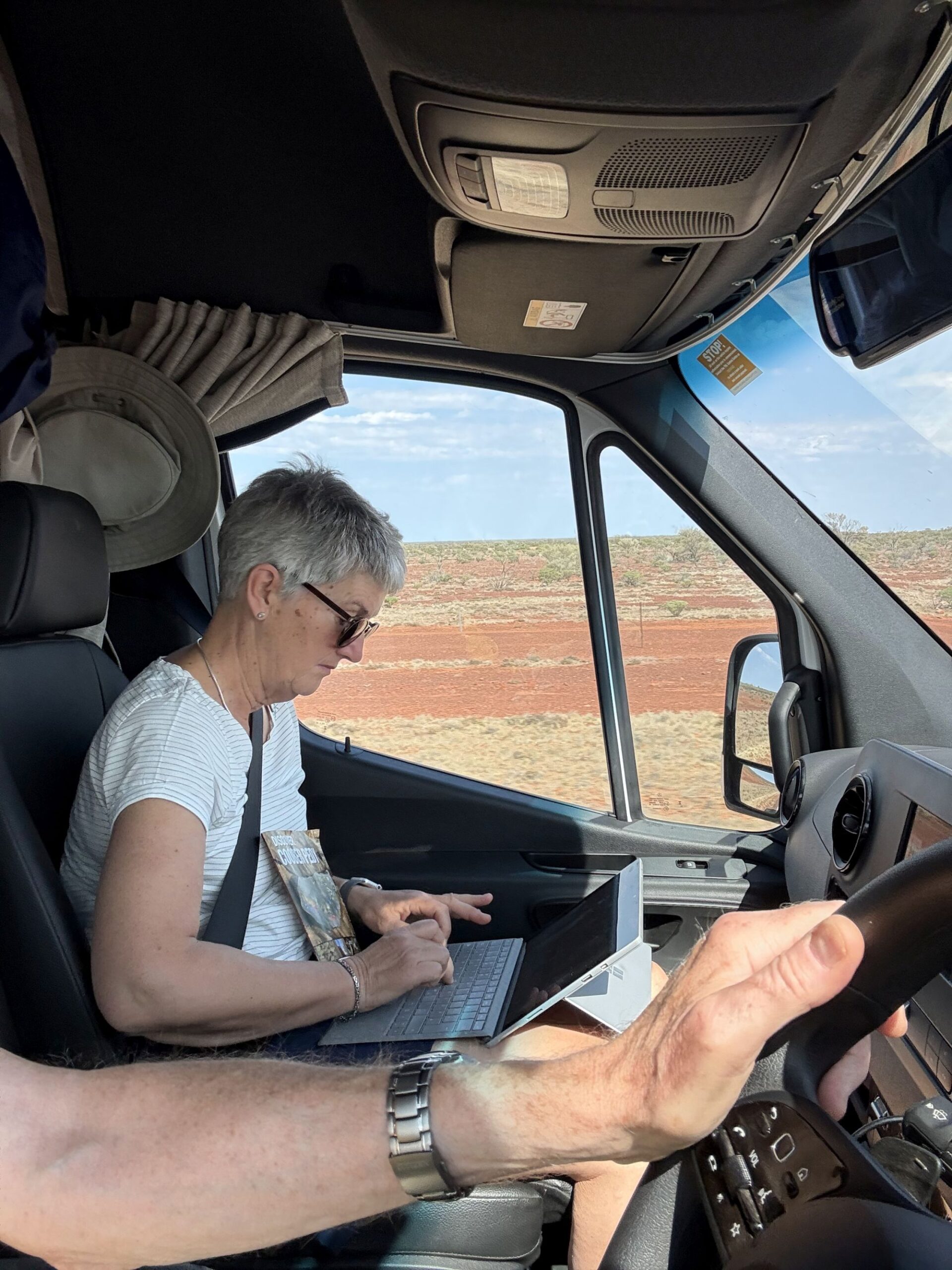 Auf dem uns bereits wohlbekannten Campingplatz in Alice Springs steht das erste Waschen an. Ich wasche das erste Mal auf Kreditkarte, man muss nämlich keine Münzen einwerfen, die Waschmaschine hat einen Kreditkartenleser! Nur leider zieht in Alice Springs ein Regengebiet durch. Mit geschicktem Timing bekommen wir trotzdem alles trocken. da hilft es, dass wir nur zwei Ladungen Wäsche waschen müssen, da bei unserem Autovermieter ein Linen Service inkludiert ist. Wir können uns an jeder Niederlassung frische Bettwäsche und Handtücher holen.